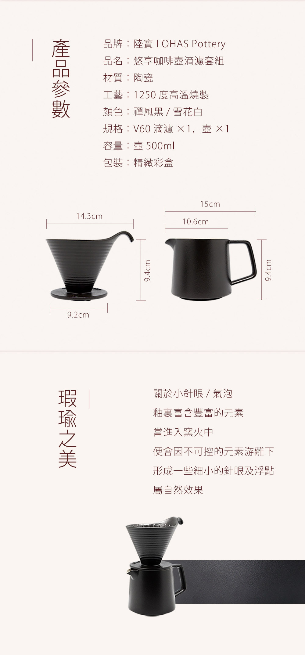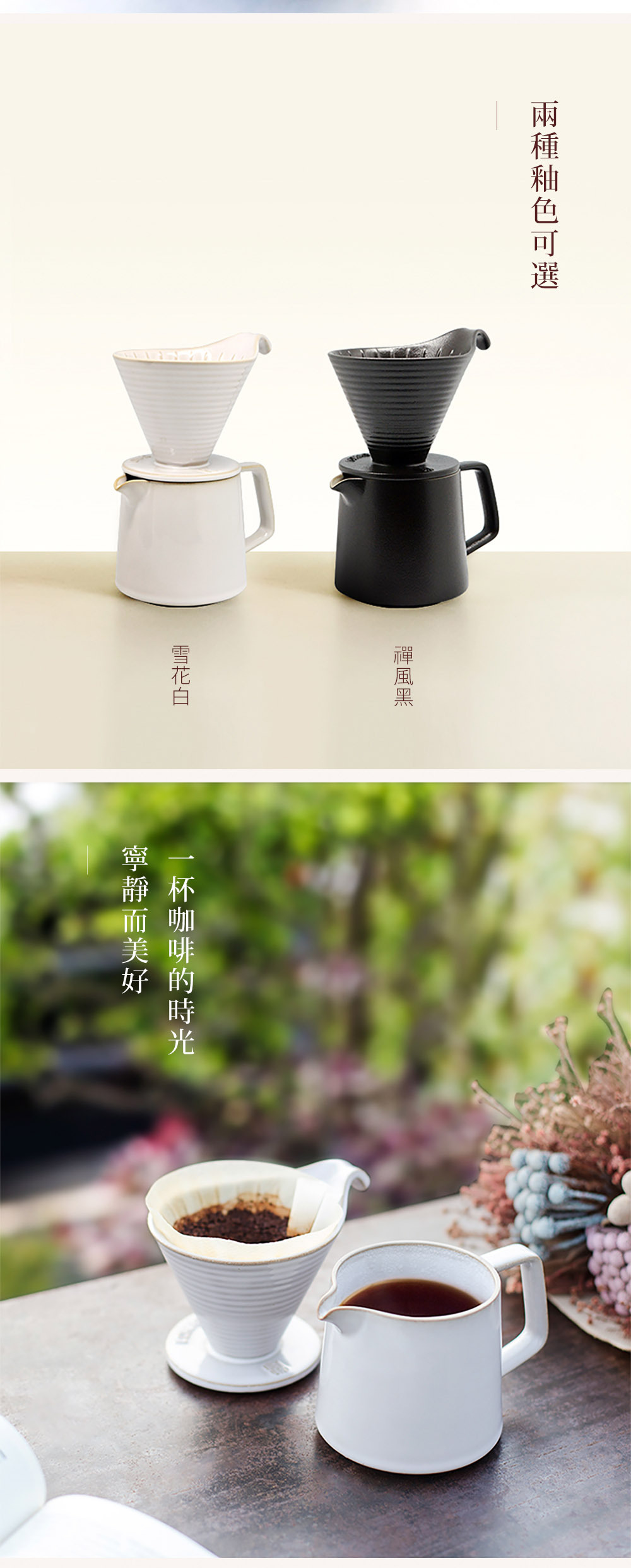 ✧黑白兩種釉色可選,即使是一杯咖啡的閒暇,也是那般地寧靜且美好。