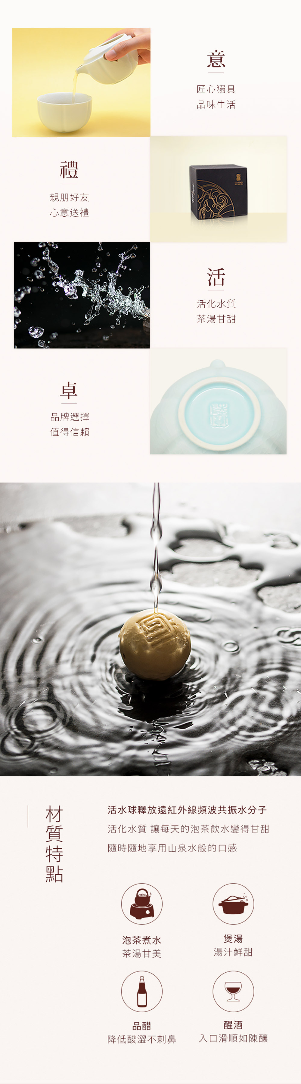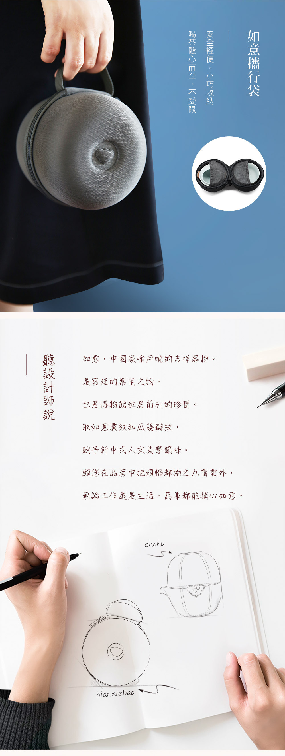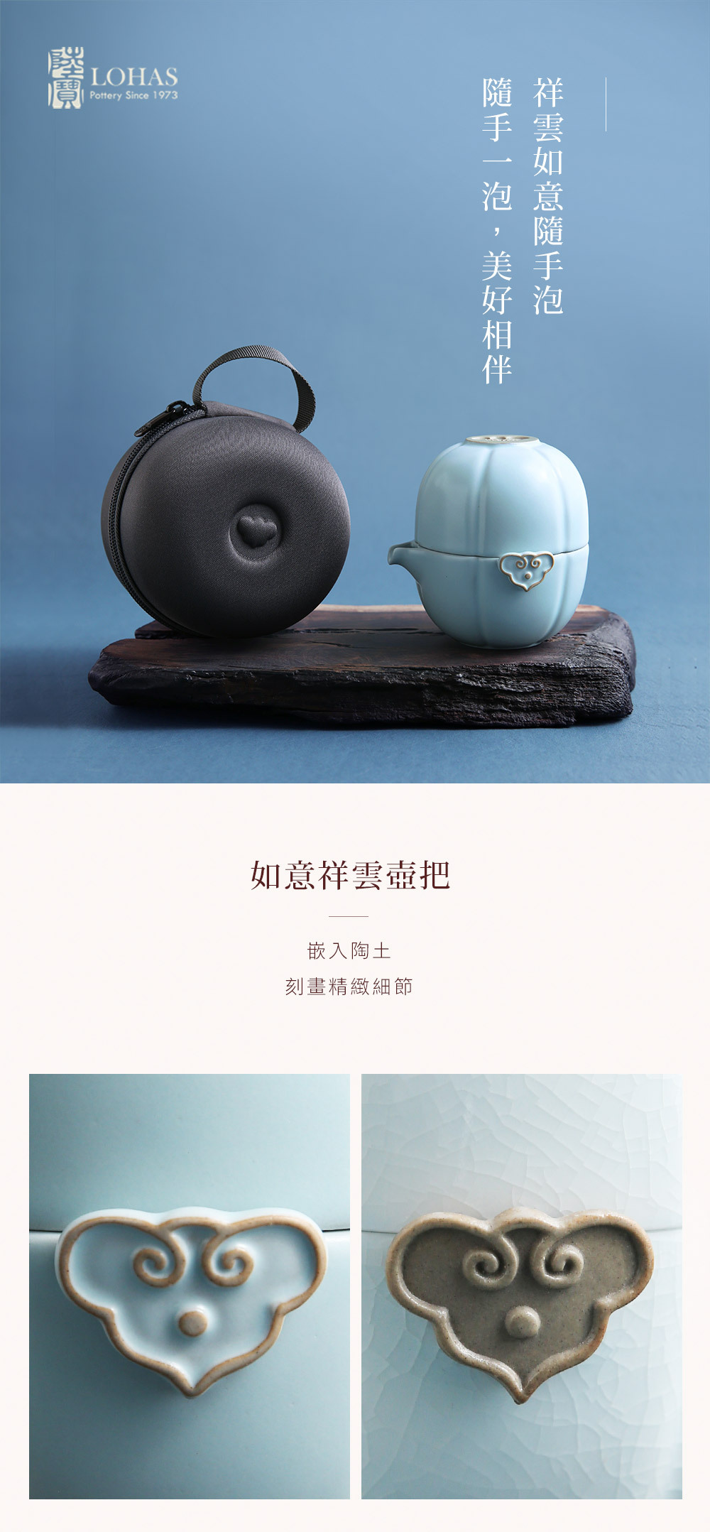 ✧中空壺把,手工雕刻優美如意雲紋,既隔熱防燙又聚祥瑞之氣。中式瓜菱瓣紋,杯蓋合一,讓器物在樸拙中,展現精緻細節。杯底印刻「如意」二字,願您萬事順心,品飲雅玩皆如意。